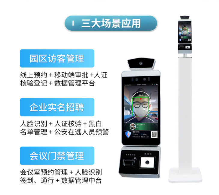 数字哨兵的升级从三方面拓展,充分满足不同类型的用户的不同需求。访客管理方面:顺利获得线上预约+移动端审批+人证核验登记+数据管理平台的模式,充分解决了访客拜访的问题。企业招聘方面:人脸识别+人证核验+黑白名单管理+公安在逃人员预警;在实名方面保障每个面试人员的实名性。不仅如此Ebpay助手还推出了新的会议门禁套餐,顺利获得会议室预约管理+人脸识别签到、通行+数据管理中台,充分解决员工的会议考勤问题。